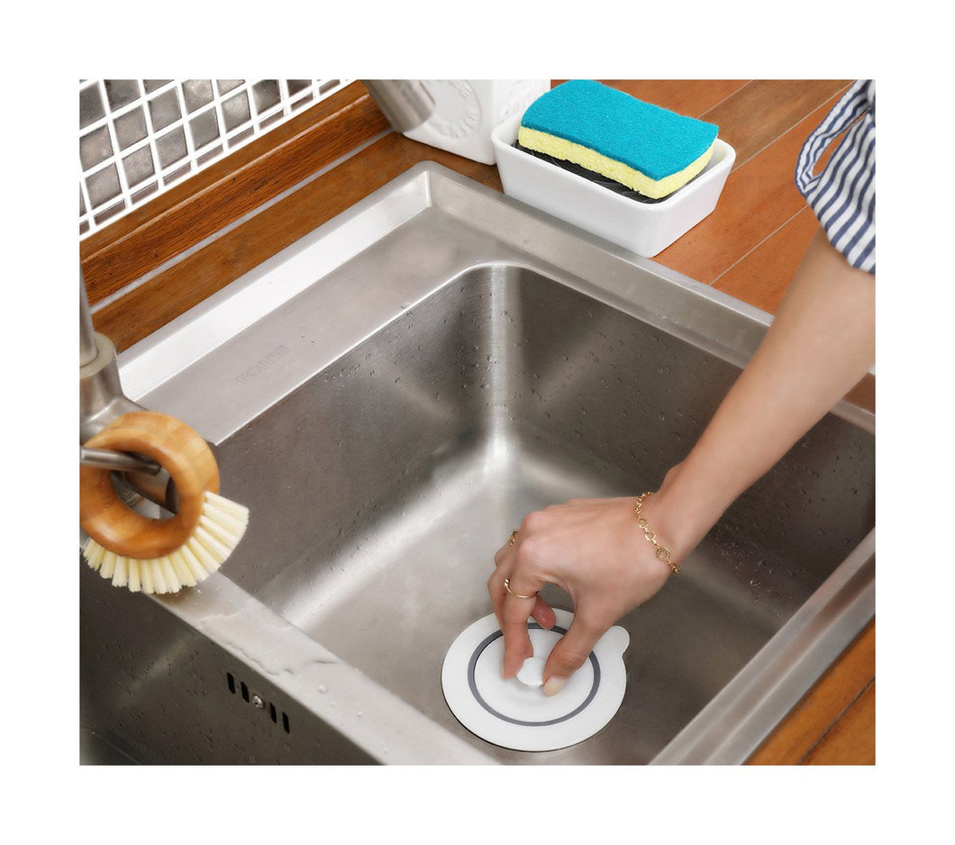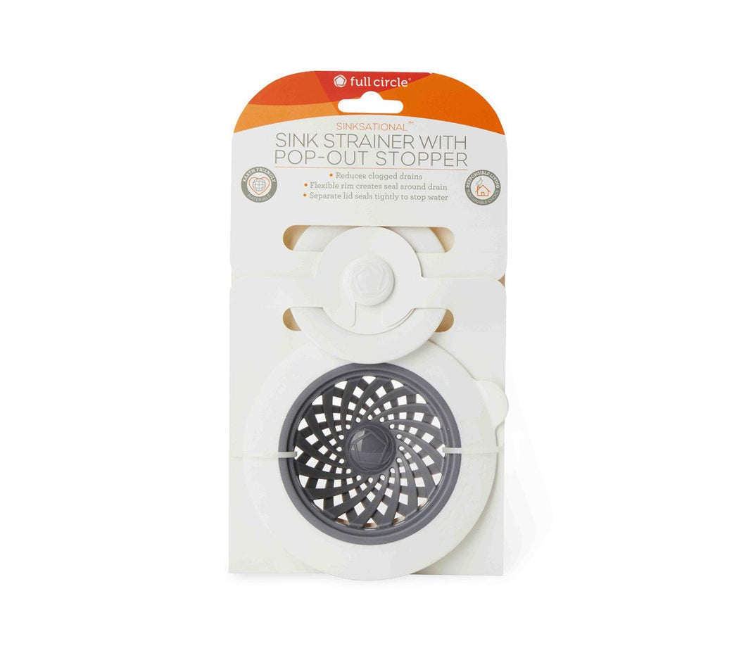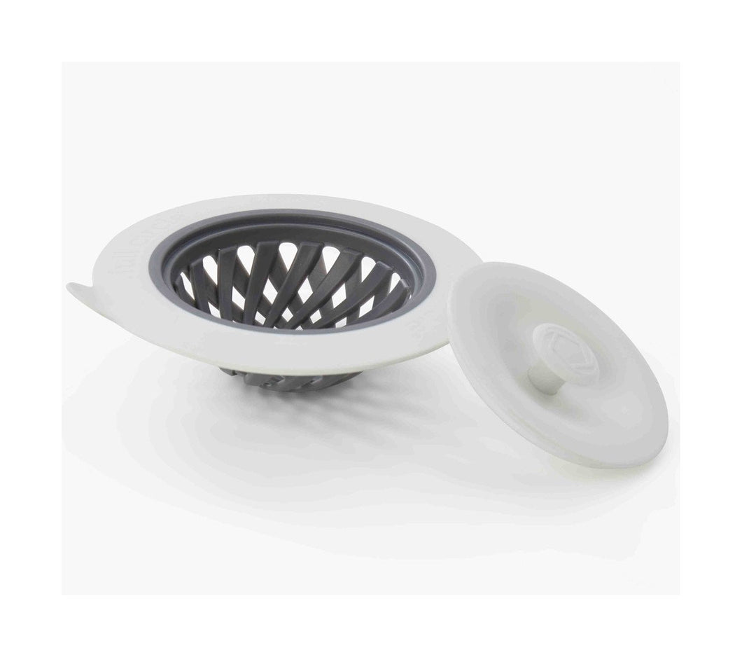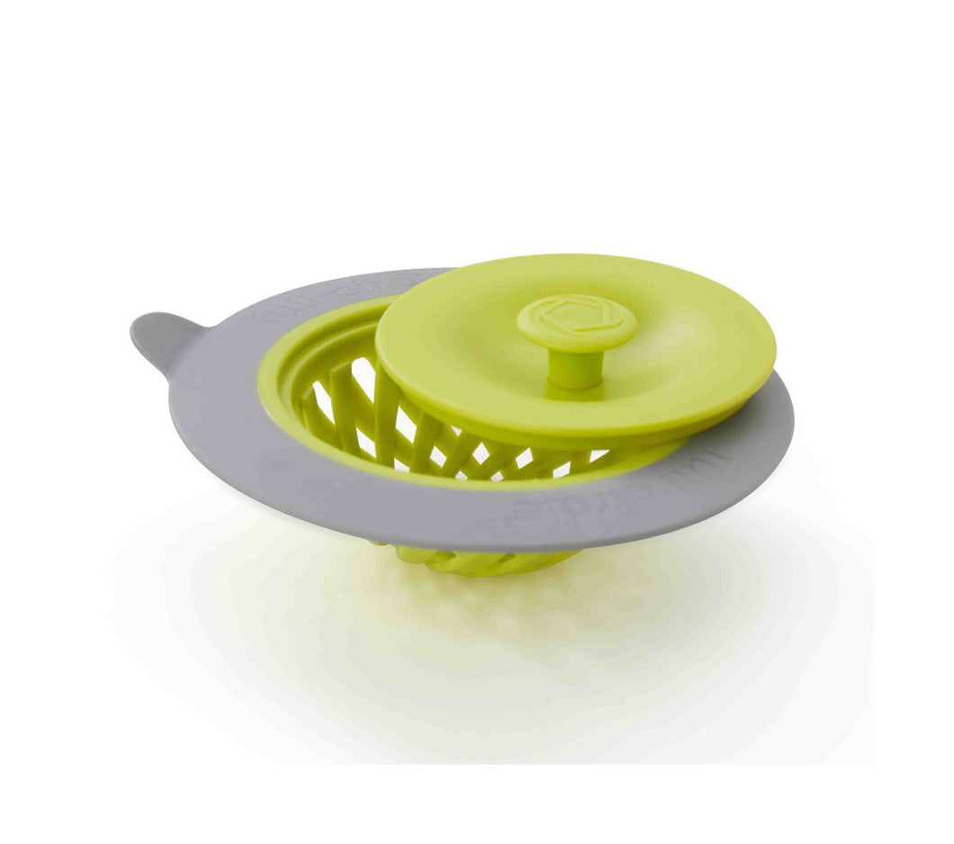 Putting a strain on your drain? Then do your sink a favor with this strainer and stopper. The stopper pops on top of the strainer when you need to fill your sink, and the strainer’s tab makes it easy to remove from the drain, even when the sink is full.