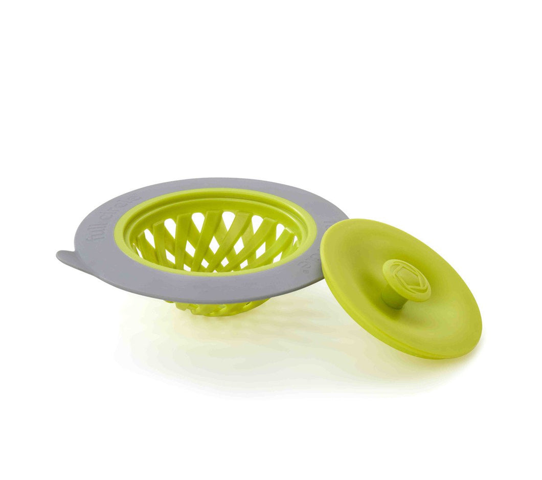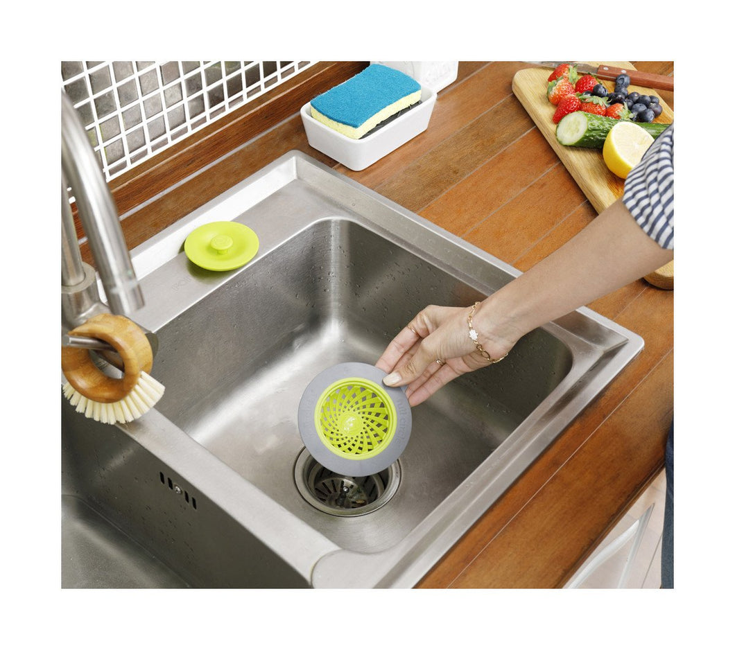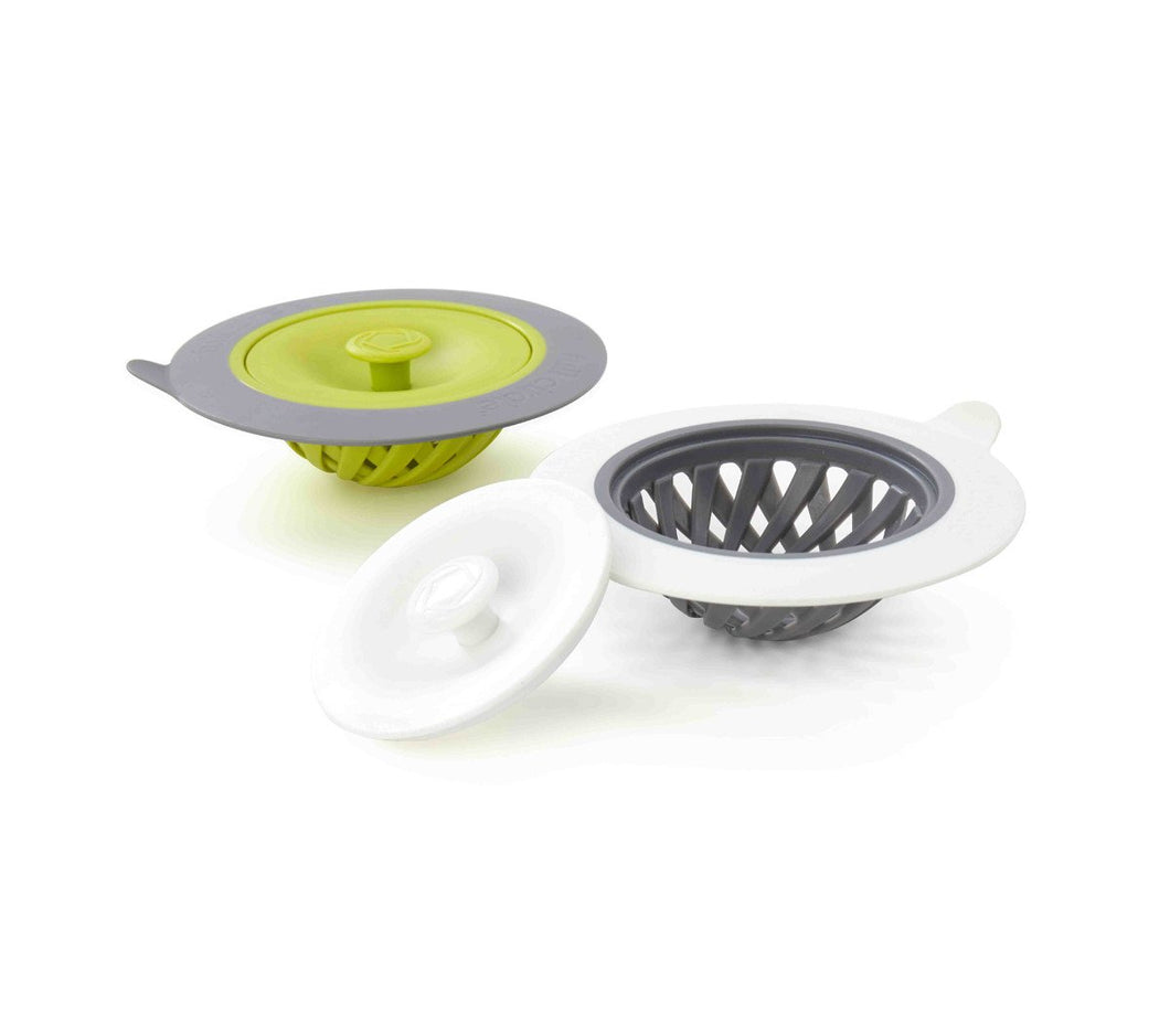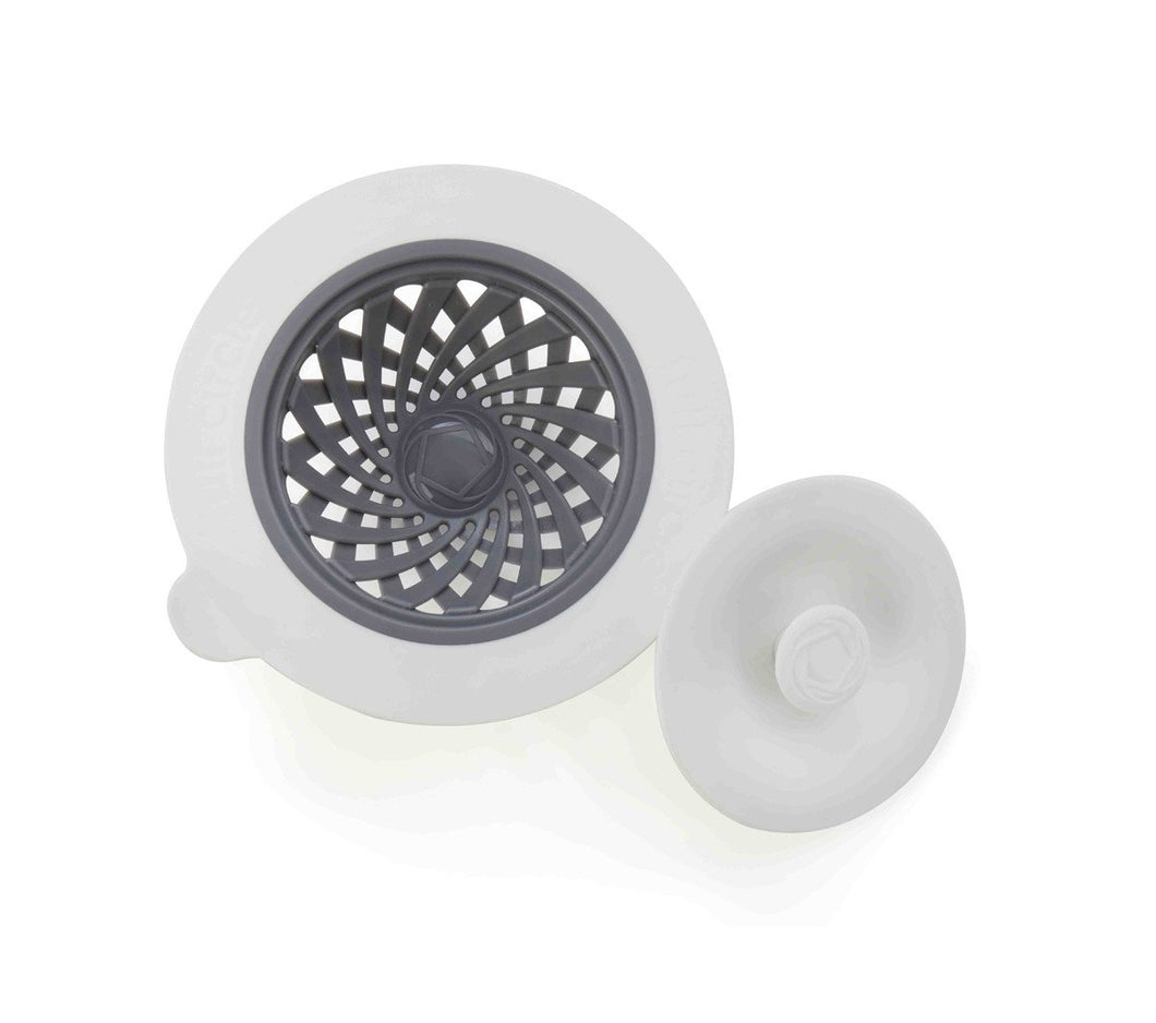 Putting a strain on your drain? Then do your sink a favor with this strainer and stopper. The stopper pops on top of the strainer when you need to fill your sink, and the strainer’s tab makes it easy to remove from the drain, even when the sink is full.