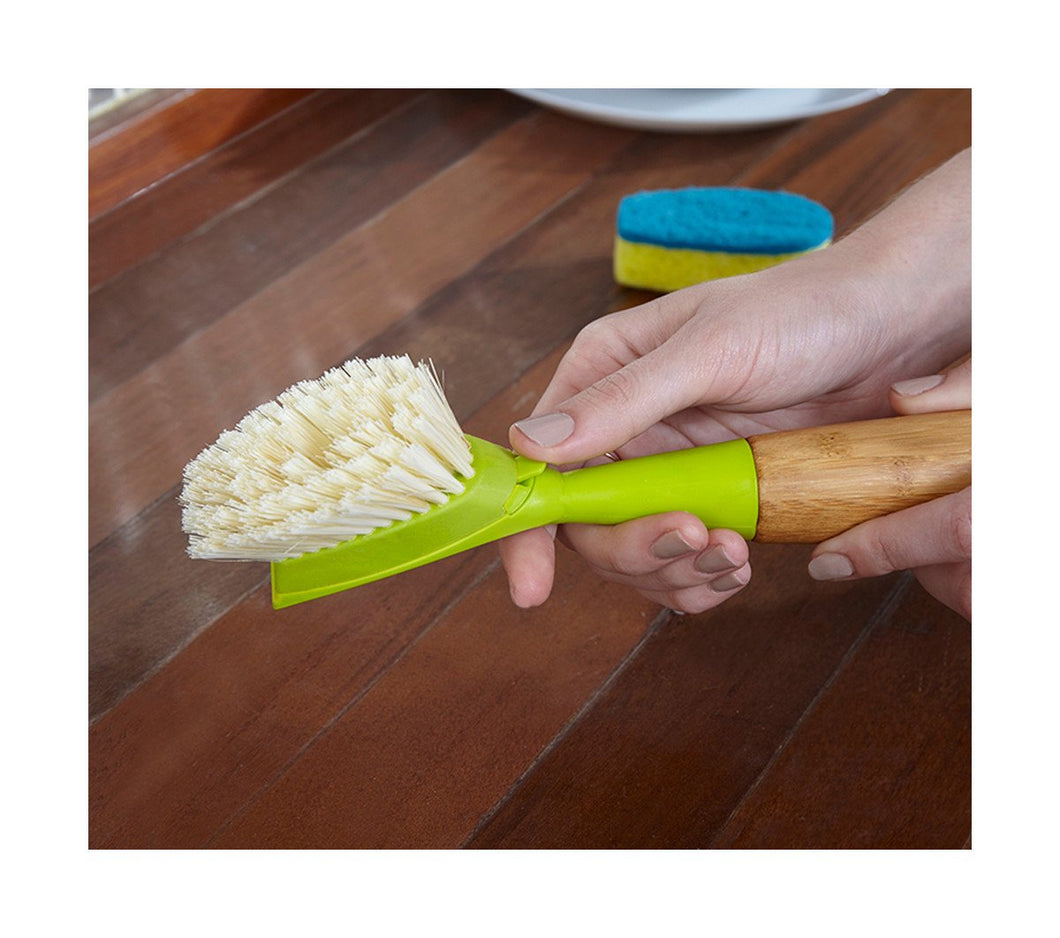 Talk about one awesome duo! A bamboo handle plus a replaceable head with tough-scrubbing bristles make dish duty fly by in a flash. And when you’re done, stand it up for fast, easy drying.