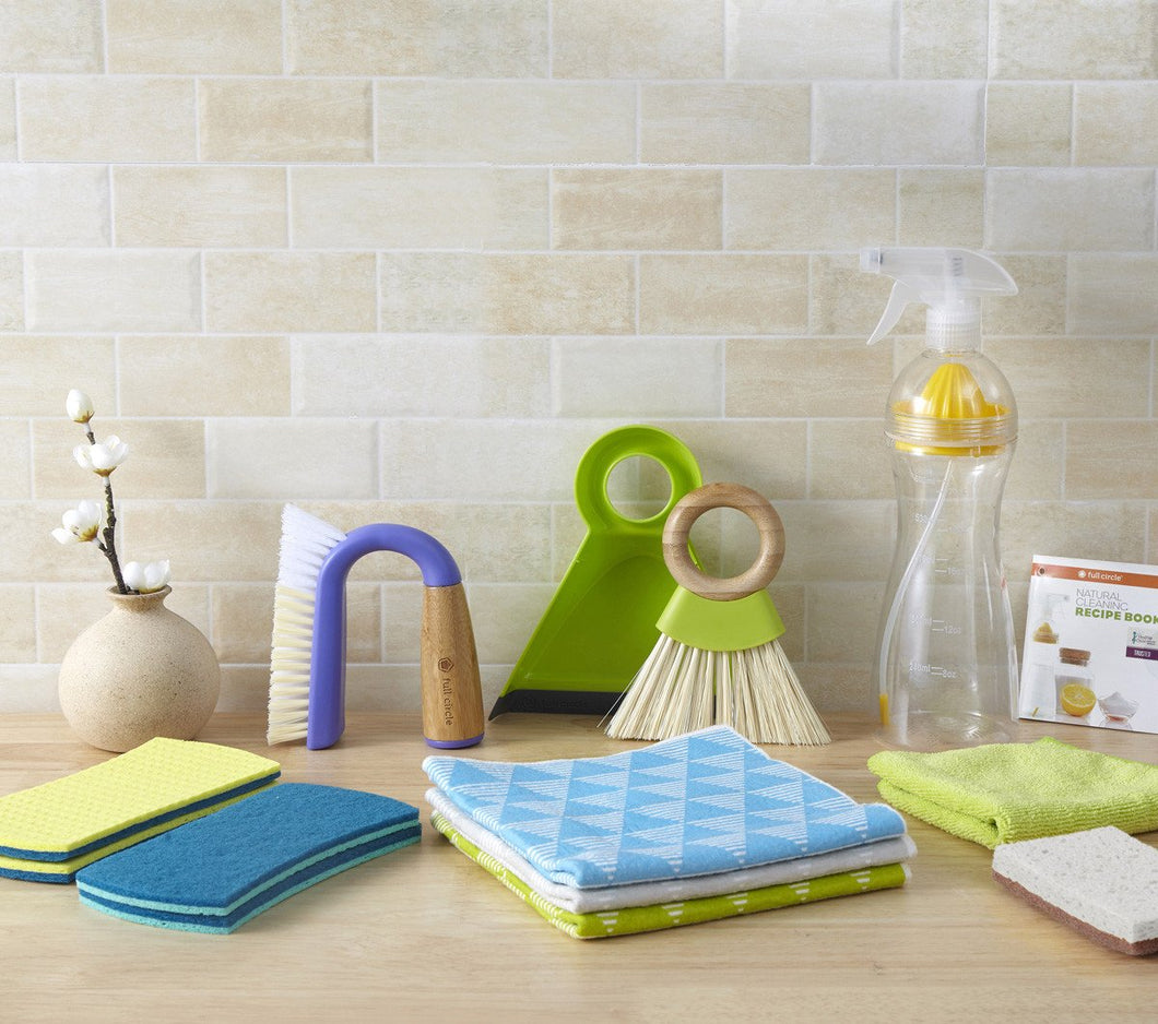 • What’s Included: Stretch counter scrubbers, Grunge Buster grout & tile brush, Tiny Team mini brush & dustpan set, Pulp Friction dusting cloths, 1 In a Nutshell Two-Pack, Come Clean bottle & recipe book