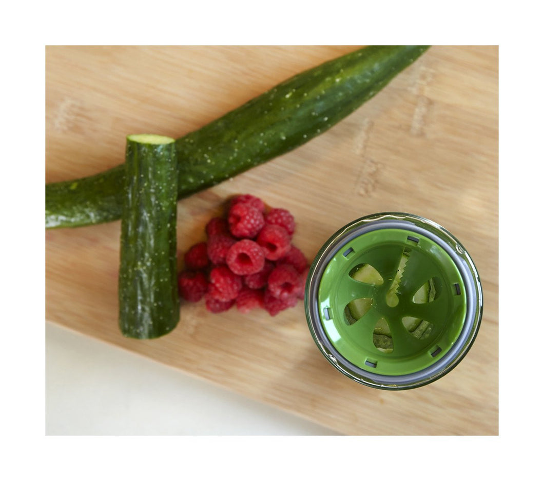 • Removable cucumber spiral cutter adds fresh flavor